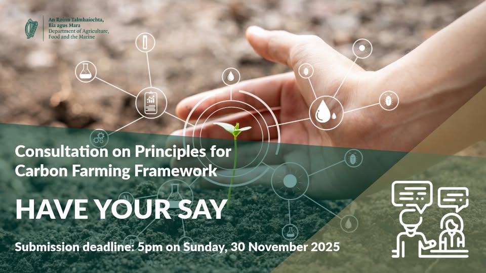 Closing date: Sunday 30th November 2025 at 5pm Carbon farming provides a potential opportunity for our farmers/land managers to derive a new income stream for their farm. We encourage all stakeholders to submit their views on how carbon farming can be successfully implemented. Have your say: https://gov.pulse.ly/kdujisc0ec