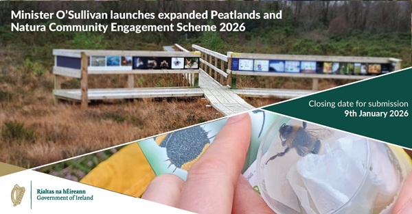Closing date: Friday 9th January 2026 The Peatlands and Natura Community Engagement Scheme aims to encourage local communities, organisations, educational institutions, and other stakeholders to actively contribute to the conservation and restoration of Natura 2000 sites and peatland areas. Natura 2000 sites are protected sites, including Special Protection Areas (SPA) for birds and Special Areas of Conservation (SAC) for habitats and species. Applications are welcomed across a diverse range of initiatives with community benefit from events, education programmes, promotions, publications, exhibitions, development of conservation management plans, public amenity and recreational measures, maintenance measures that support conservation measures, monitoring or surveying work to inform of restoration/conservation projects, invasive species and fire control measures, anti-littering initiatives to local environmental improvements in the area of the designated sites and other peatland areas. For more information click HERE