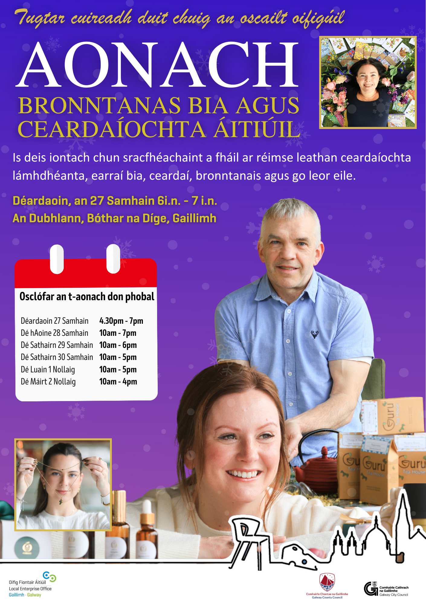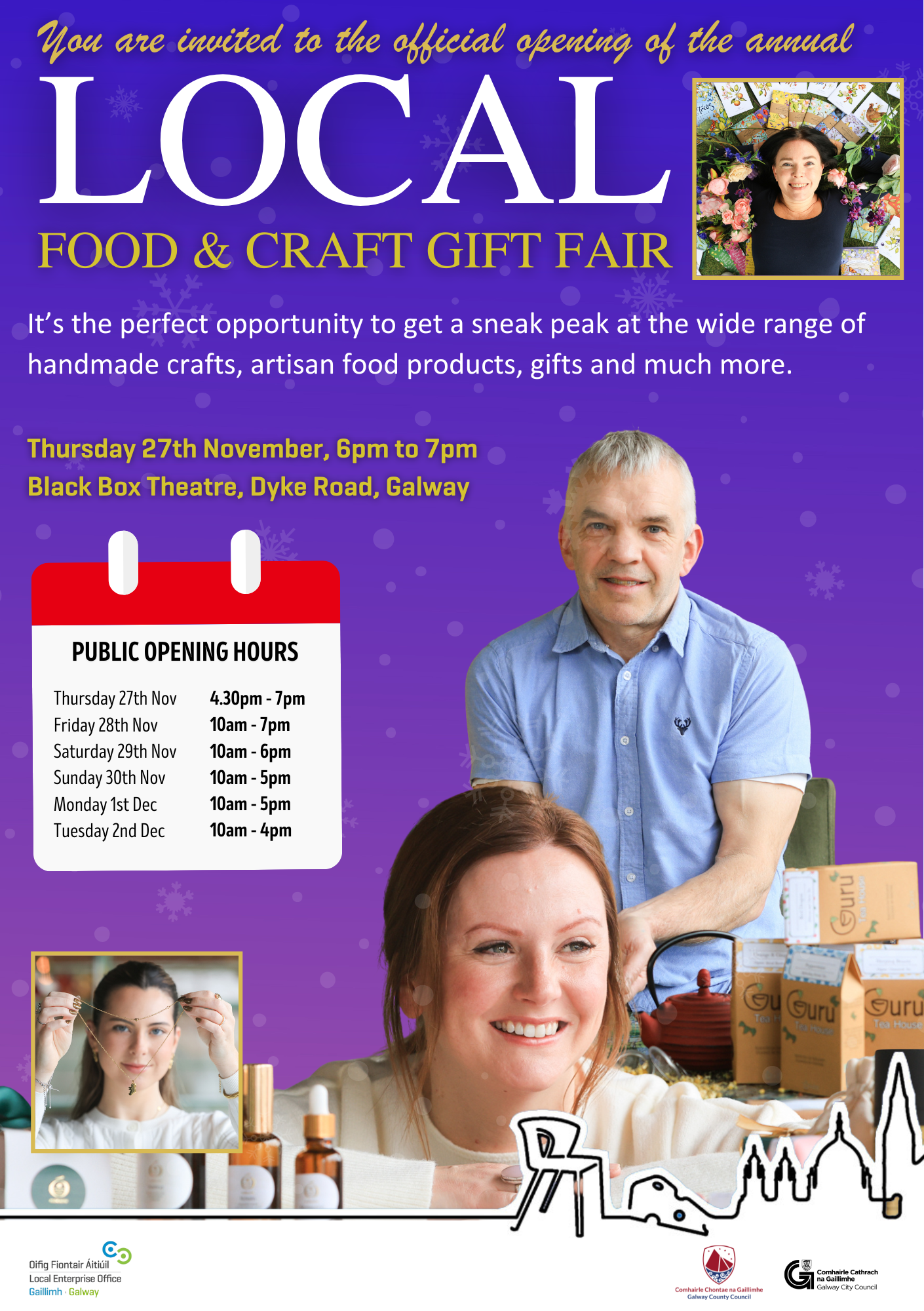 Until Tuesday 2nd December 2025 Black Box Theatre, Dyke raod, Galway The Local Food and Craft Gift Fair returns to the Black Box Theatre, Galway, from Nov 27th–Dec 2nd for SIX days of local talent, handmade crafts, and delicious artisan food. Over 50 stalls of Galway’s best makers, free entry, family fun, and Barnardo the Magician to keep the kids entertained! Proudly supporting the Galway Sick Kids Foundation. Learn more at https://ow.ly/RyyS50XnTyT