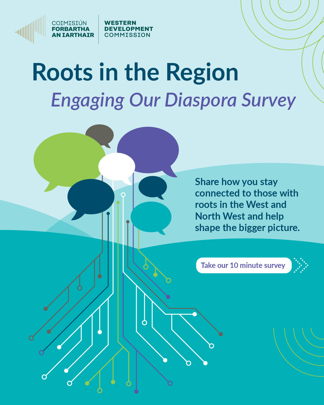 Closing date: Monday 22nd December 2025 at 11.59pm Western Development Commission (WDC) has launched an exciting new research survey to understand how people and organisations stay connected with the region’s diaspora. Communities across the Western Region keep strong ties with those who have moved away or feel connected through family, history, or shared interests. The research will gather insights from individuals and organisations to highlight what’s happening, what’s working, and where new opportunities for collaboration or support exist. Read more: https://loom.ly/BrsTgqg Share your story and get involved: https://loom.ly/yaSCAbI
