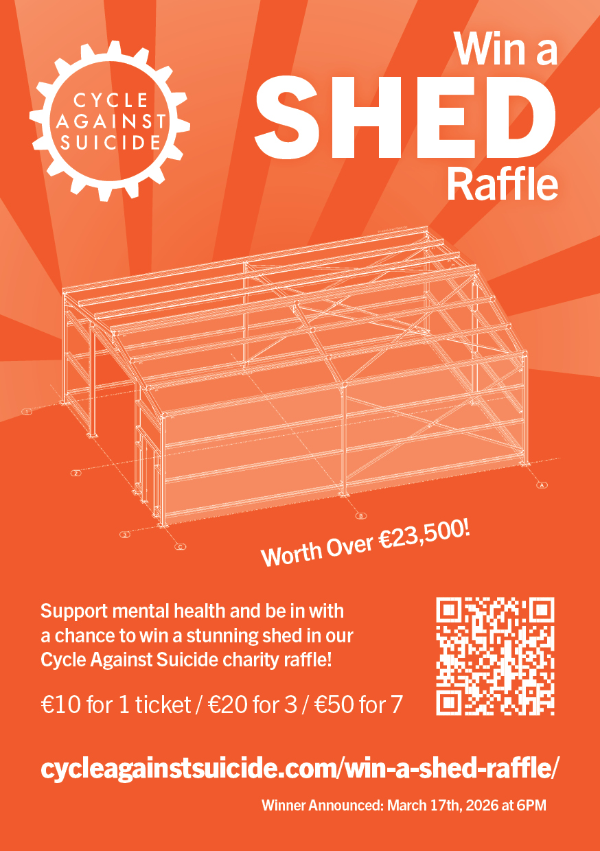 Winner Announced: St. Patrick’s Day, 17th March 2026 at 6pm Support mental health and be in with a chance to win a stunning shed valued at over €23,500 in the Cycle Against Suicide charity raffle! All proceeds go toward Cycle Against Suicide’s vital mental health initiatives across Ireland. Cycle Against Suicide is a mental health awareness and suicide prevention charity providing schools, students, parents, workplaces and communities with the tools and techniques to address mental health with confidence and, ultimately, create a culture of help-seeking behaviour, encouraging active listening, shared discussions, and positive coping methods. Alongside mental health training programmes, they also run mental health awareness events such as cycling events, static spin events, and mental health awareness stands across the country, allowing us to reach out to and communicate with all Ireland's communities, both urban and rural. Support the vital work the charity does in mental health and suicide prevention! Buy a ticket here: https://www.cycleagainstsuicide.com/win-a-shed-raffle/