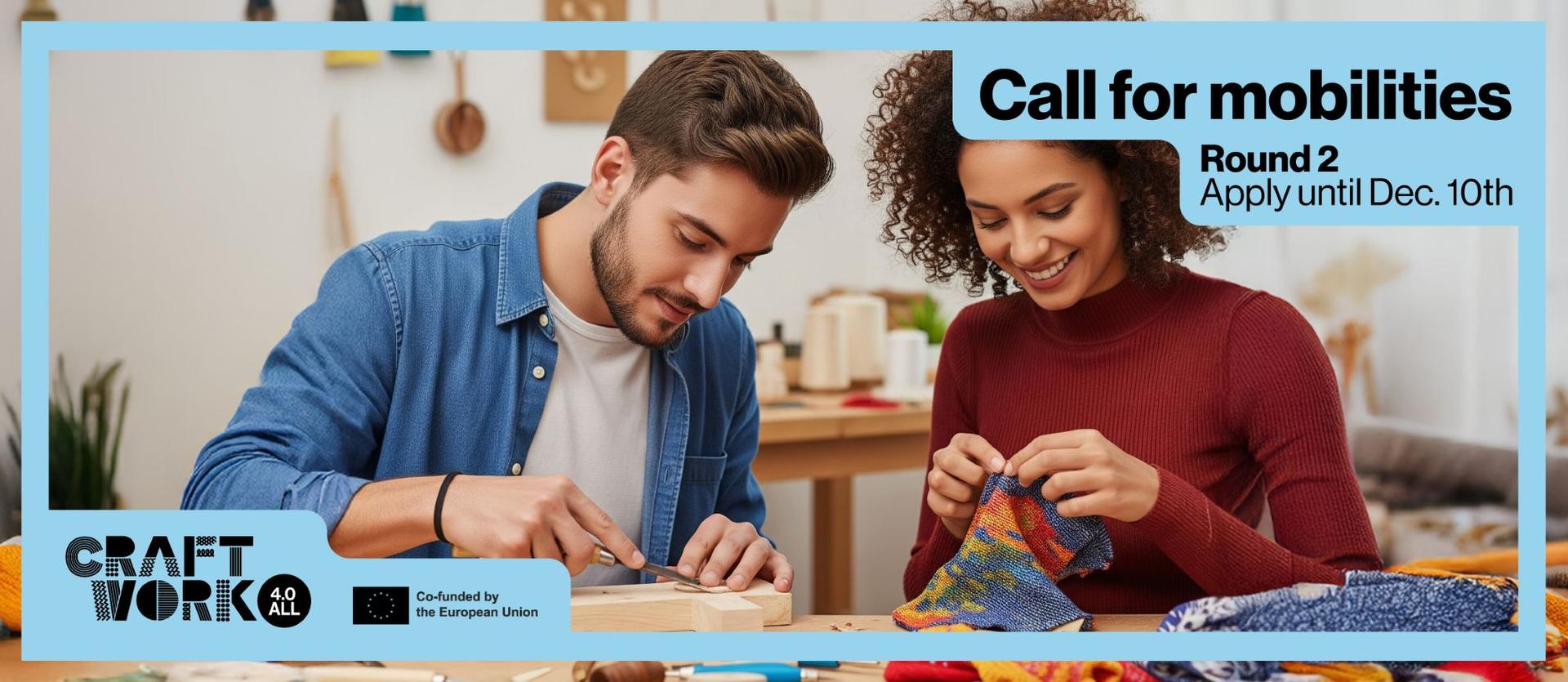 Closing date: Wednesday 10th December 2025 at 10am CET Craftwork 4.0 All - Round 2 is open! Looking for one Craft Practitioner from Croatia, France, Ireland, Serbia, Slovakia, Slovenia for a 10-day craft co-creation in 2026. Travel, accommodation & food covered! Hosting Organisations can join too. Exchange, learn & create together! More info and application: www.craftwork4all.com/craft-mobilities/