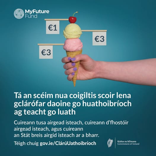 Cuirfear tús le scéim nua coigiltis scoir d'fhostaithe ar an 1 Eanáir 2026. Faigh amach cé acu an mbeidh tú cláraithe go huathoibríoch ag https://ow.ly/jM6P50WtWQS