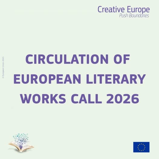Closing date: Friday 29th January 2026 at 4:00pm Creative Europe's call for Circulation of European Literary Works supports projects that translate, publish, distribute, and promote European works. Translation, publication, promotion, and distribution of fiction. Supports collaboration between authors, translators, publishers, distributors, booksellers, libraries, literary events and festivals. For more information, please visit: https://www.creativeeuropeireland.eu/funding-opportunities/call/circulation-of-european-literary-works