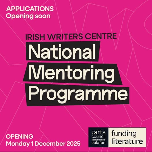 Opening date: Monday 1st December 2025 Closing date: Wednesday 31 December 2025 at 7pm The National Mentoring Programme is an opportunity open to all writers across the island of Ireland to receive sustained creative and professional mentoring from an established Irish writer of their choosing. Applications will open on Monday December 1st, all the info you need to prepare yours here: https://irishwriterscentre.ie/national-mentoring-programme/
