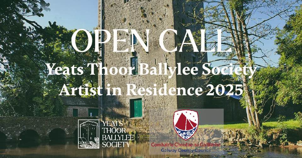 Closing date: Friday 6th June 2025 The Yeats Thoor Ballylee Society, supported by Galway County Council Arts Office, is hosting an Artist Residency this summer in The Studio at Thoor Ballylee, running from 26th July to 9th August. The focus this year will be on visual arts, textiles, embroidery and printing. Artists working in any of these areas are encouraged to apply. For more info, please visit: https://yeatsthoorballylee.org/2025/05/12/call-open-for-thoor-ballylee-artist-in-residence-2025/