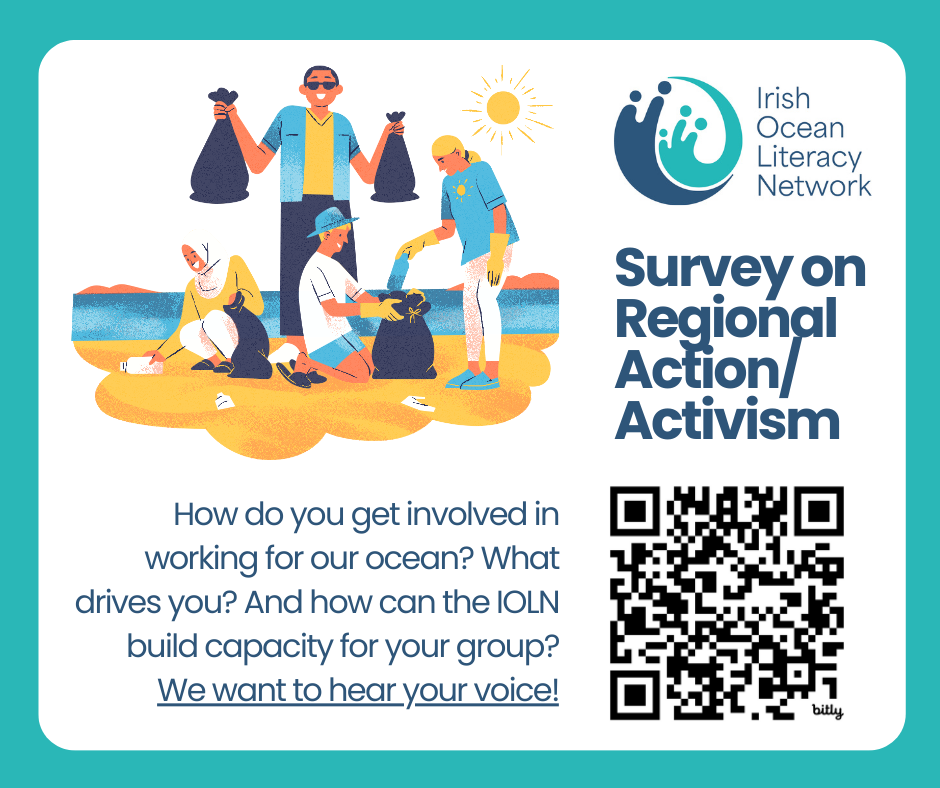 Closing date: Monday 23rd June 2025 The Irish Ocean Literacy Network (IOLN) Regional Action and Activism Working Group is inviting environmental groups to participate in a short survey aimed at understanding the types of ocean activism/activities across Ireland and identifying the common themes and motivations among groups. The goal is to use this information to support coastal communities in strengthening their knowledge, awareness and engagement with the ocean. Please take the survey: Irish Ocean Literacy Network activism survey
