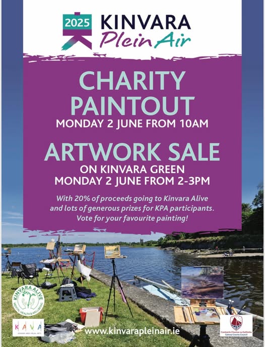 Monday 2nd June 2025 from 10am - Kinvara Co.Galway It is a great opportunity for the public to purchase a beautiful work of art featuring a local scene. 20% of proceeds go to charity KINVARA ALIVE.
