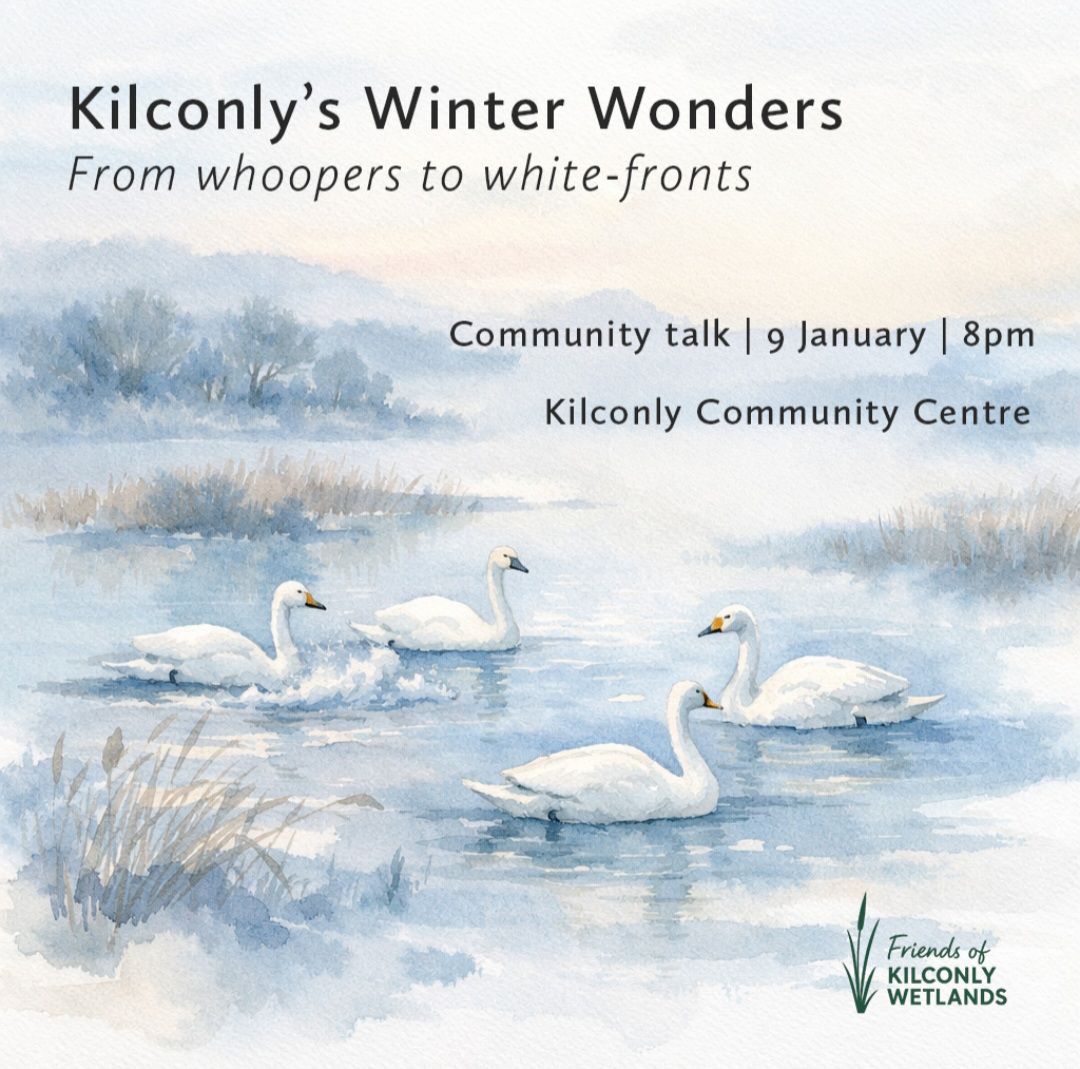 Friday 9th January 2026 8pm - Kilconly Community Centre Discover the magic of winter waterbirds! Learn about whooper swans, their journeys, and why Kilconly’s wetlands matter. Sammy Pooley from University of Galway will share insights on a major research project and the upcoming swan census. Bring your stories and sightings—community knowledge is key!