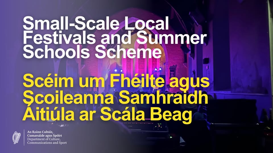 Closing date: Thursday 2nd April 2026 The Minister for Culture, Communications and Sport, Patrick O’Donovan TD announced a series of grant schemes in support of the Department’s strategic objective to increase access to the arts and National Collections. These include the Small-Scale Local Festivals and Summer Schools Scheme.The Small-Scale Local Festivals and Summer Schools Scheme is designed to assist local cultural events which may not be eligible under funding criteria for larger scale events such as those supported by Fáilte Ireland, the Arts Council and similar bodies. Funding is allocated following a competitive application process, with a maximum grant of €5,000 available. Further information can be found at Small Scale Local Festivals and Summer Schools Funding Scheme