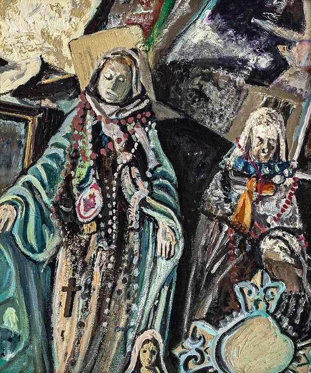 Until 8th April 2026 - Field Galaxy Gallery, The Expanded Field, Cosmona, Loughrea H62 EK76 Mary Fahy's current series of painting are inspired by rituals grief practices at St. Brigid's Well, in Liscannor, Co. Clare. The statues at the well are weighted down with mementos. These love/grief tokens represent the commonality of grief. Her work attempt to honour the memories held at this powerful site, with compassion for those who are suffering or who have passed on. We are all just passing thorough. View by appointment contact: expandedfieldloughrea@gmail.com Read more about the exhibition: https://www.rte.ie/.../1521093-the-spirit-of-the-place.../