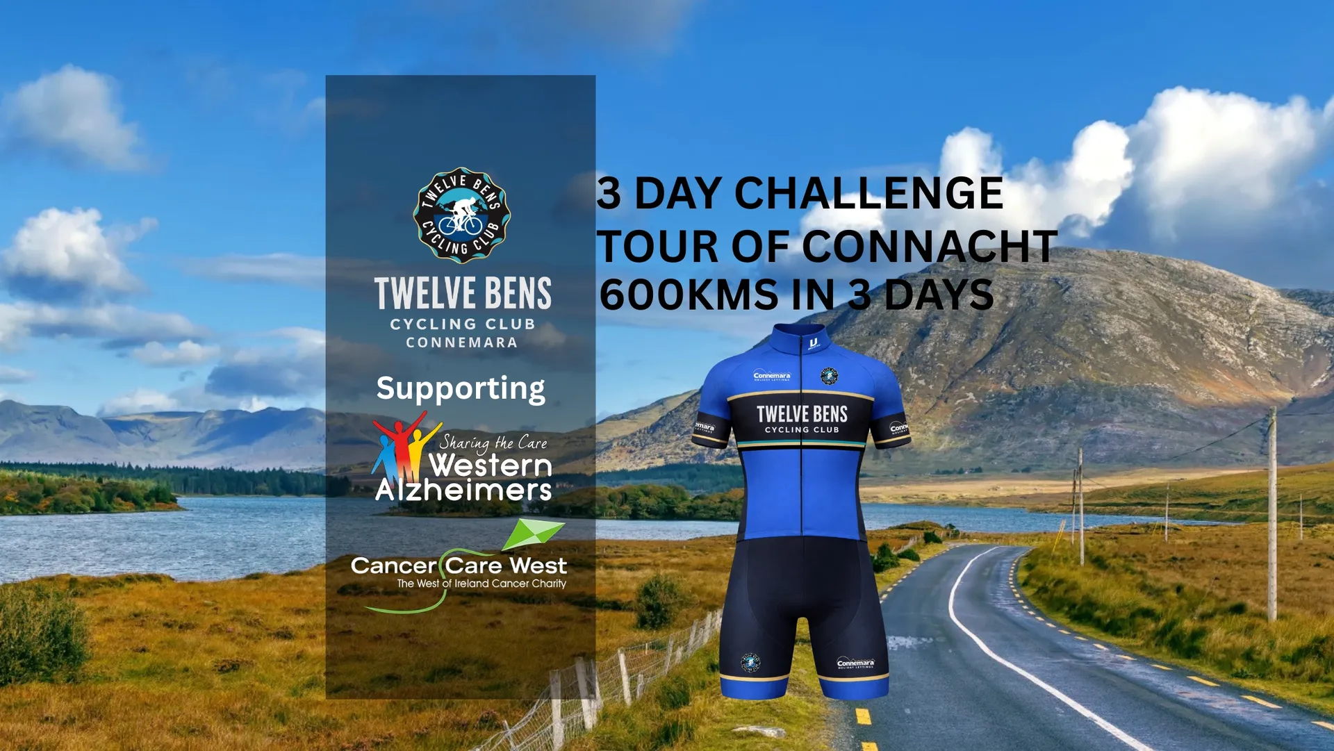 From Friday 15ht to Sunday 17th May 2026 Twelve Bens Cycling Club Charity Tour of Connacht. Connacht Challenge - 600km in 3 Days Twelve Bens Cycling Club are taking on a 600km Tour of Connacht over three days to raise vital funds and awareness for our chosen charities: 💜 Western Alzheimer's 💙 Cancer Care West Day 1. Clifden - Belmullet via Louisburgh, Westport, Newport and Mulranny. Day 2. Belmullet - Carrick on Shannon via Ballina, Inishcrone and Collooney. Day 3. Carrick on Shannon - Clifden via Knock, Ballinrobe, Maa m, Roundstone, Ballyconnelly. Every kilometer ridden supports individuals and families affected by illness across the West of Ireland. All money raised goes directly to the charities. Email: twelvebenscc@yahoo.com https://www.idonate.ie/crowdfunder/twelvebenscyclingclub