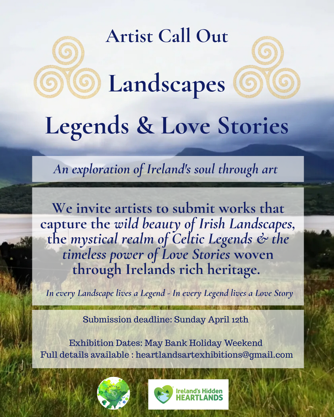 Closing date: Sunday 12th April 2026 HeARTlands Artists Collective are happy to announce their next HeARTlands exhibition - Summer Edition. Theme: Landscapes, Legends & Love Stories. Exhibition Dates: May Bank Holiday Weekend Full details & conditions of submission are available by emailing us here : heartlandsartexhibitions@gmail.com