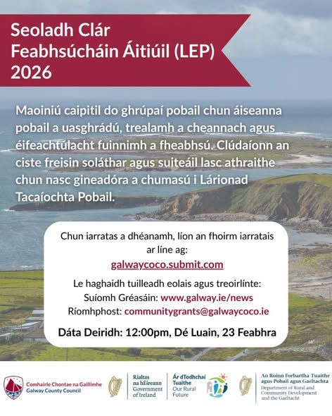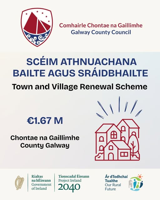 Bronnadh breis agus €1.67 milliún ar sheacht mbaile agus sráidbhaile ar fud Chontae na Gaillimhe atá ag obair chun áiseanna áitiúla a neartú, oidhreacht a chosaint agus aghaidh a thabhairt ar fholúntas. Léigh tuilleadh