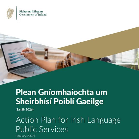 Tá Plean Gníomhaíochta do Sheirbhísí Poiblí na Gaeilge 2026-2028 foilsithe ag an Roinn Forbartha Tuaithe agus Pobail agus na Gaeltacht. Cuideoidh an plean le normalú na Gaeilge agus cuirfear í ag croílár na seirbhíse poiblí, ag cumasú do chainteoirí na teanga í a úsáid agus iad ag déanamh éileamh ar sheirbhísí. Léigh tuilleadh