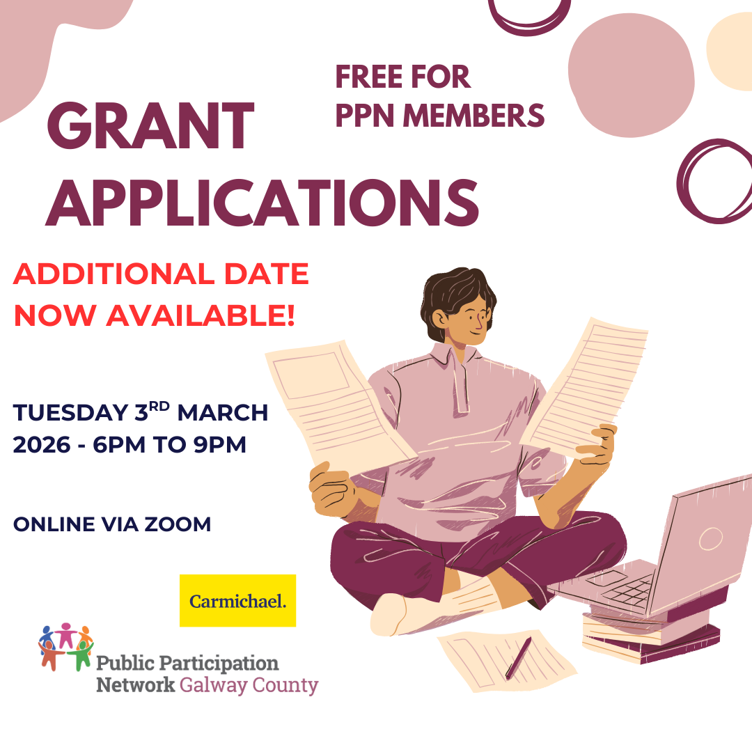 Please note: Galway County PPN only share information about Funding and Grants, and does NOT administer them. If you have any queries please contact the funding administrator directly via the details provided in the advert.