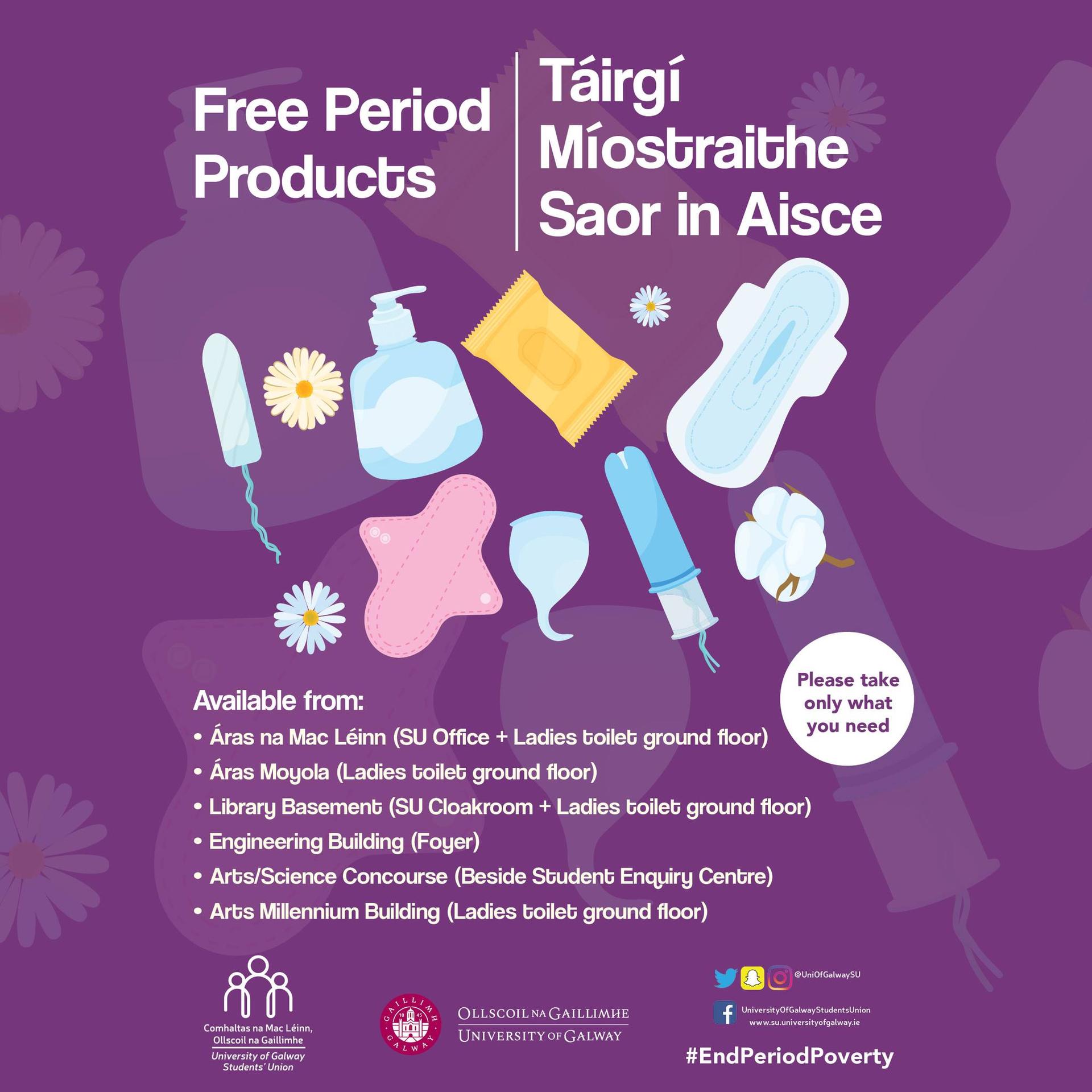 University of Galway and University of Galway Students’ Union Free Period Products / Táirgí Míostraithe Saor in Aisce