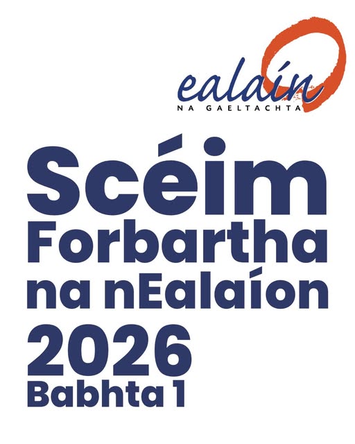 Spriocdháta léiriú spéise: Luain 2 Feabhra 2026 Scéim Forbartha na nEalaíon sa Ghaeltacht 2026, Babhta 1 Tá an scéim seo oscailte do ghrúpaí, d’eagraíochtaí, d’ealaíontóirí agus do dhaoine aonair sna ceantair Ghaeltachta. Tabharfaidh sé tacaíocht aon uaire do thionscadail ealaíon d’ardchaighdeán a mhéadaíonn rannpháirtíocht an phobail sna healaíona agus/nó a thacaíonn le healaíontóirí Gaeltachta a gcleachtais agus a ngairm bheatha a chothú agus a fhorbairt. Is féidir leat teagmháil a dhéanamh linn ag ealain@udaras.ie Tá treoir agus foirm iarratais ar fáil ar ealain.ie